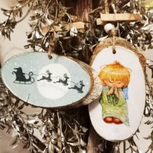 Božični okrasek iz lesa (debla) za na jelko – Angelček.