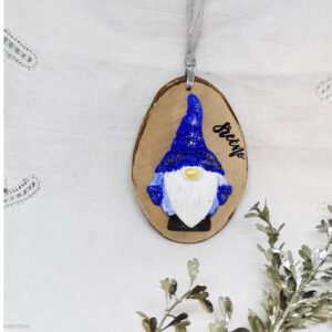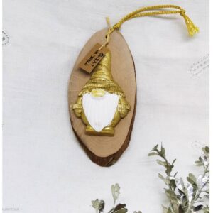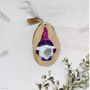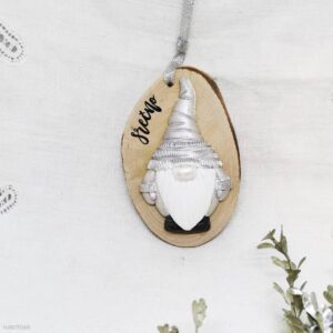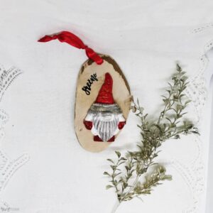 Božični okrasek iz lesa (debla) in iz gline (škrat) – za na smrečico ali zid stanovanja – ŠKRAT.