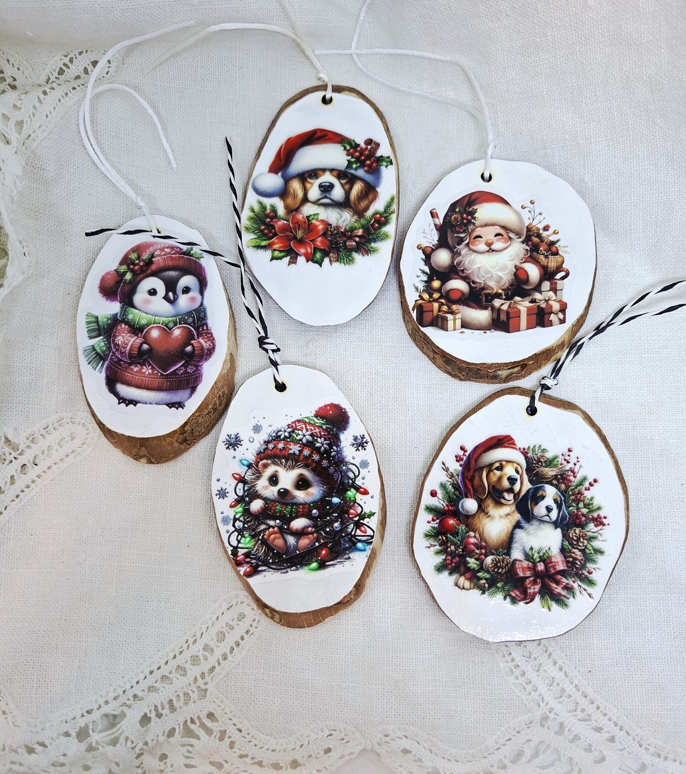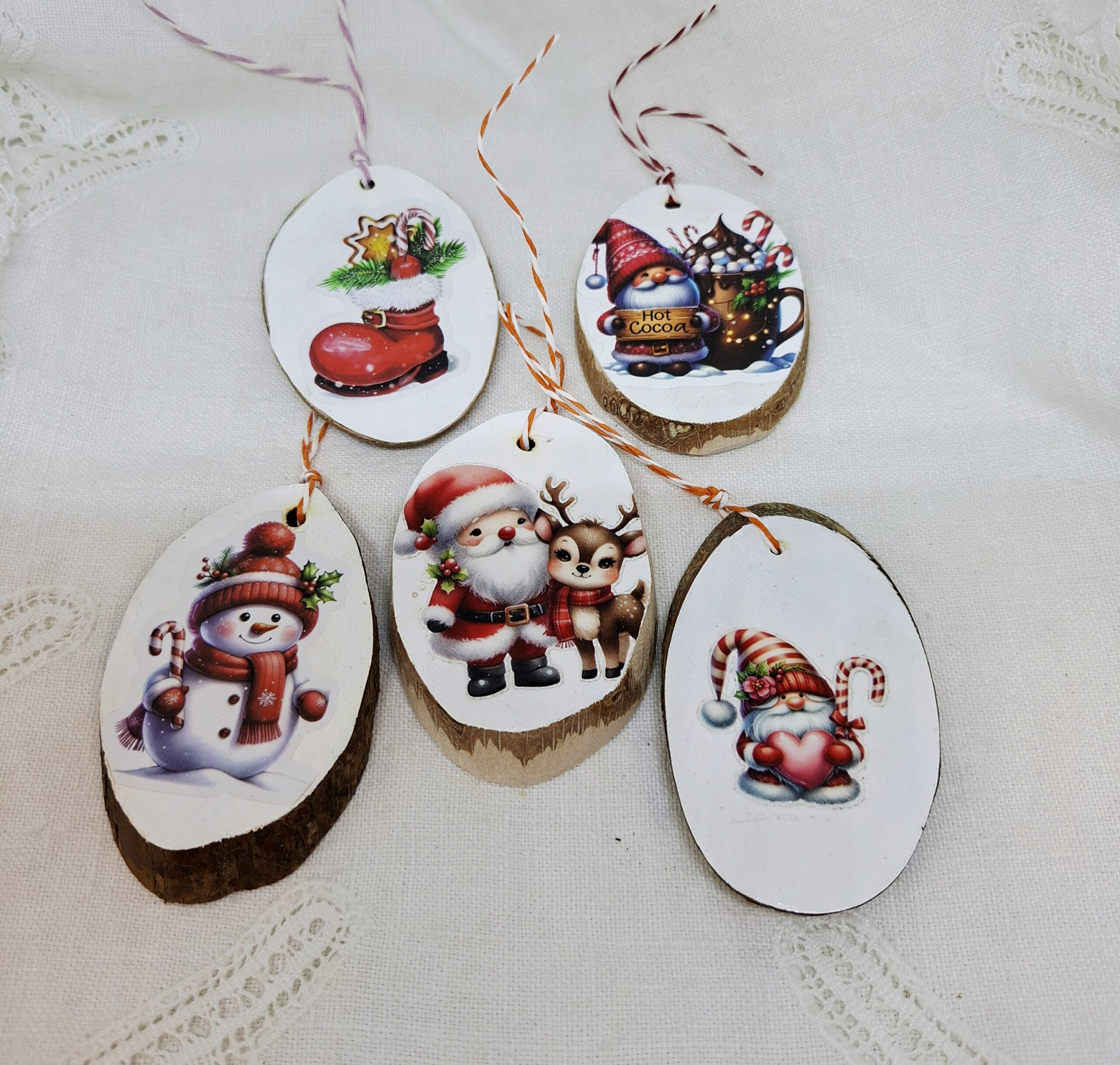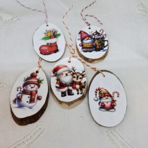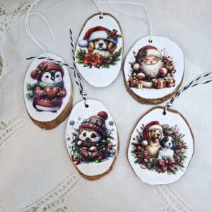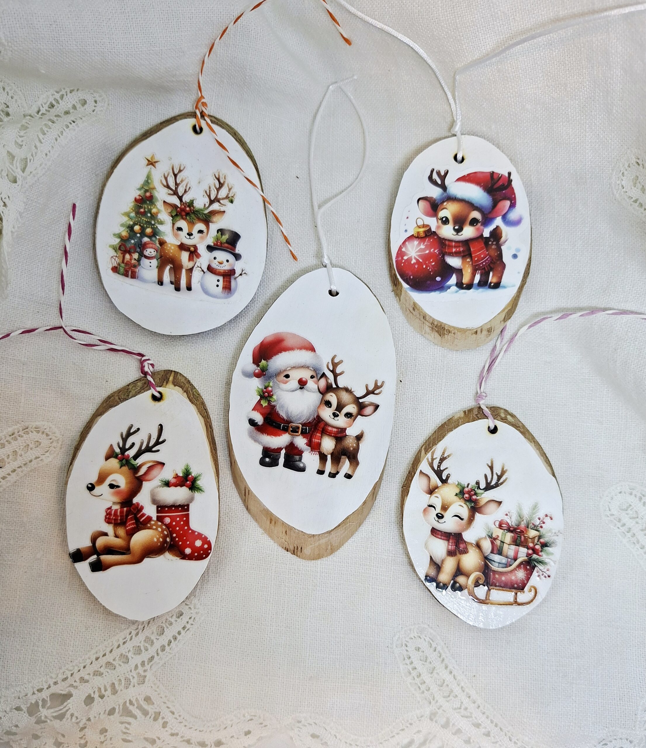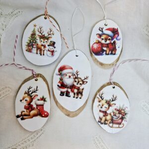 Božični okraski iz lesa (debla) za na jelko – SNEŽAKI, JELENČKI, ŠKRATI…..