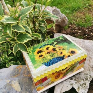 Lesena skrinja – Sončnice.
