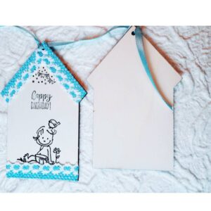 – voščilnice so iz slovenskega lesa-topol, v obliki hišice ali razglednice v formatu 10 x 15 x 0,3 cm,