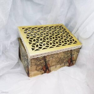 Leseni predalnik – grajski predalnik z motivom not in violine.>/strong>.