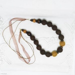 Ogrlica iz polstene volne v rjavi barvi. Ročno delo.